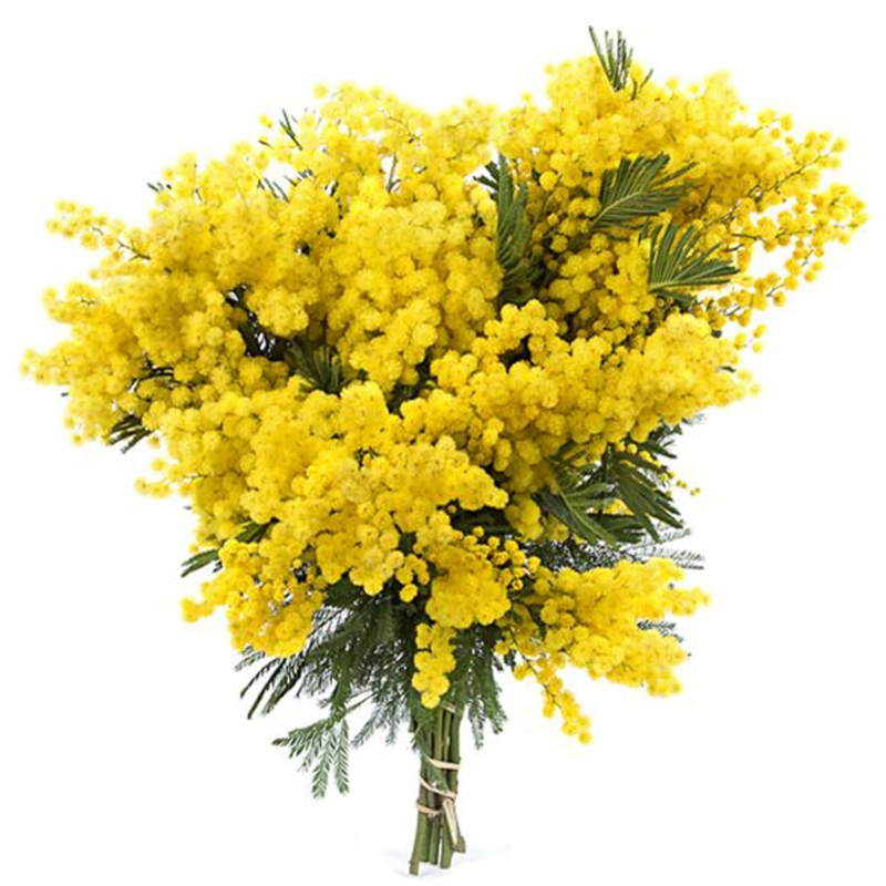Букет состоит из 9 веток мимозы, прозрачная упаковка, лента.